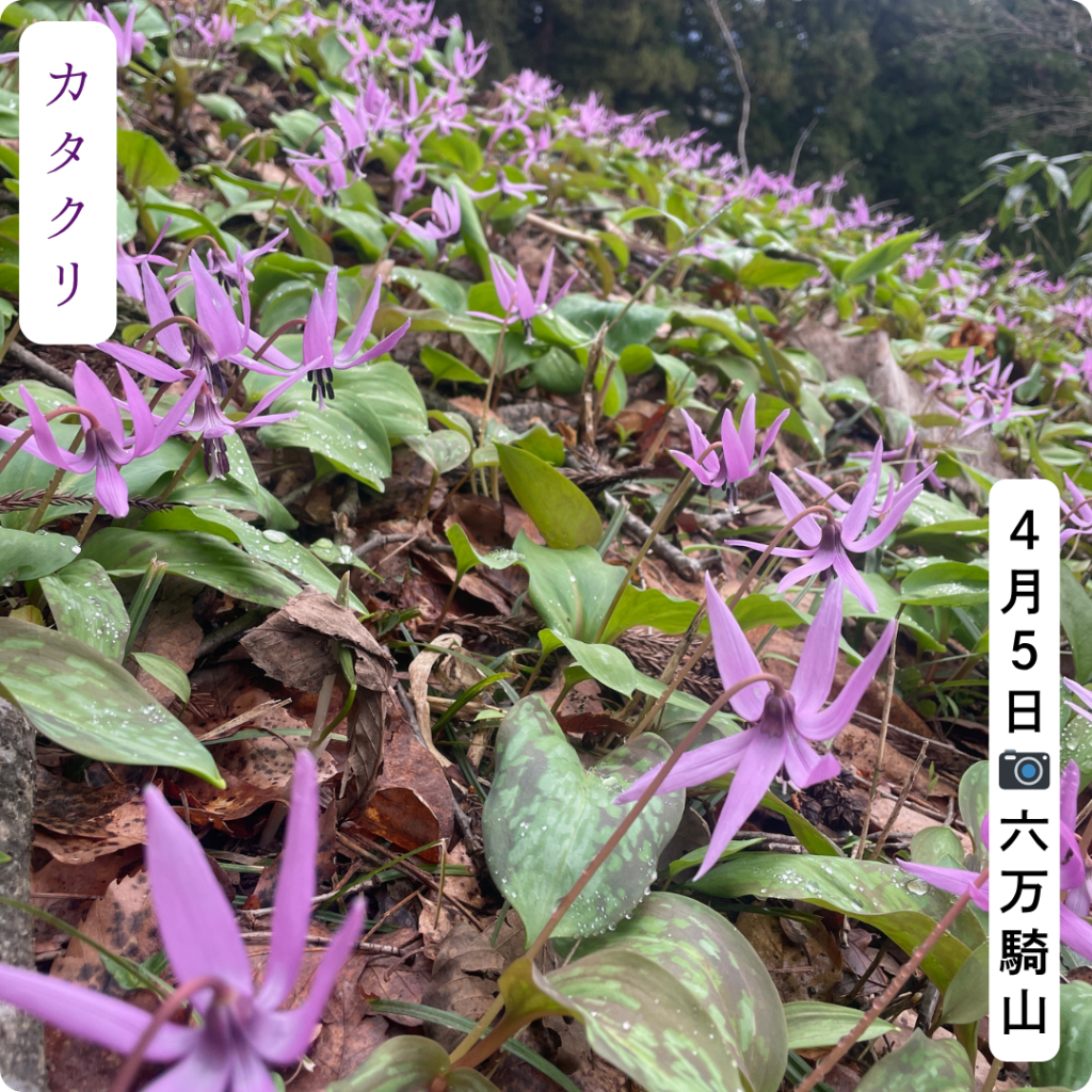 カタクリが見頃を迎えています。今日もたくさんの登山の方でにぎわっていました。