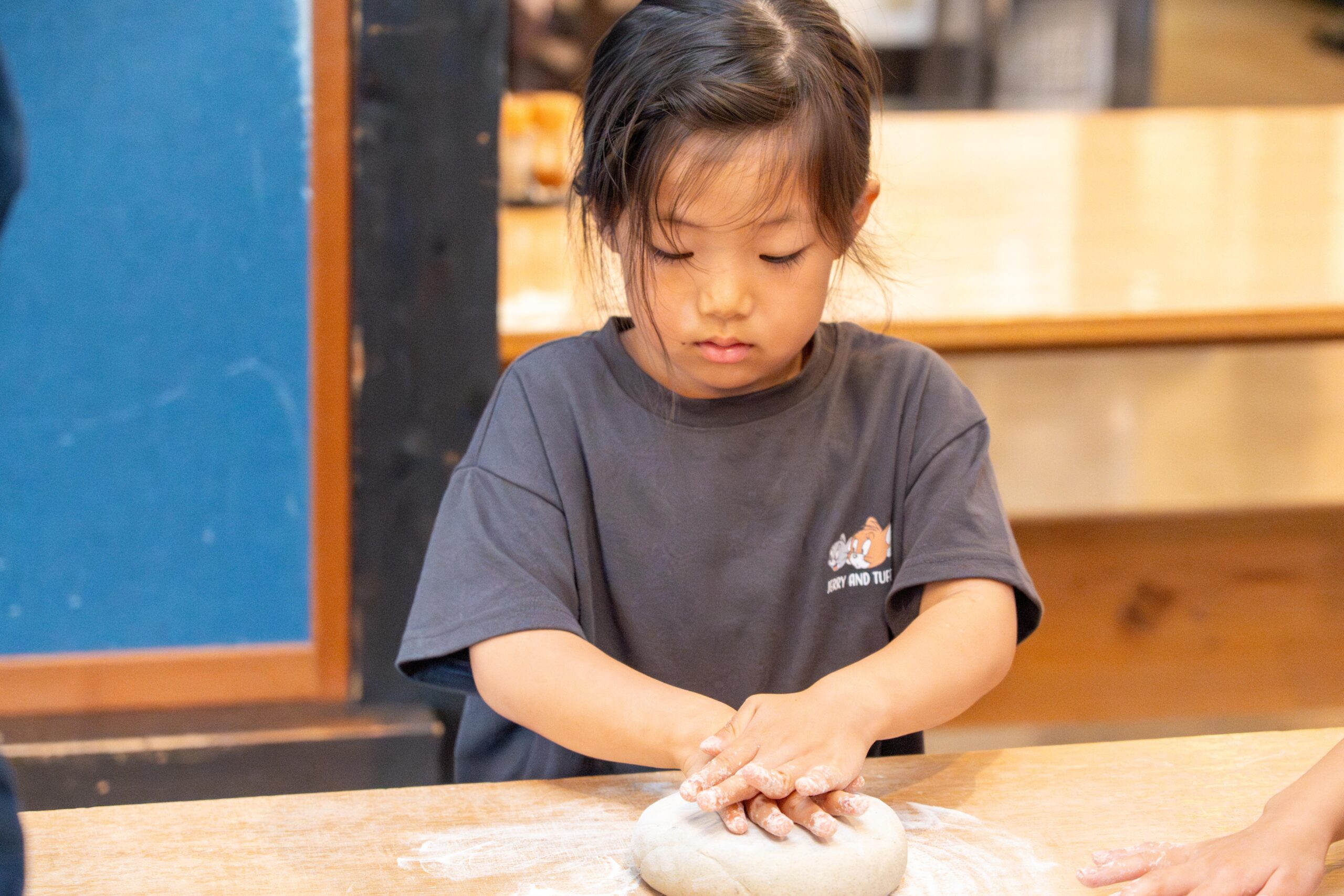 「上田の郷」は農村体験と地域食を楽しめる里山の体験施設。地元の自然とふれあいながら、季節ならではの体験が可能。店員の方は全員地域のお母さんたち。田んぼに囲まれた施設内で時間を忘れて地域交流ができる珍しい施設です。そば打ち体験は、最後に自分が作ったそばを食べることができ、当たり前と感じる食のありがたみに実感することができます。