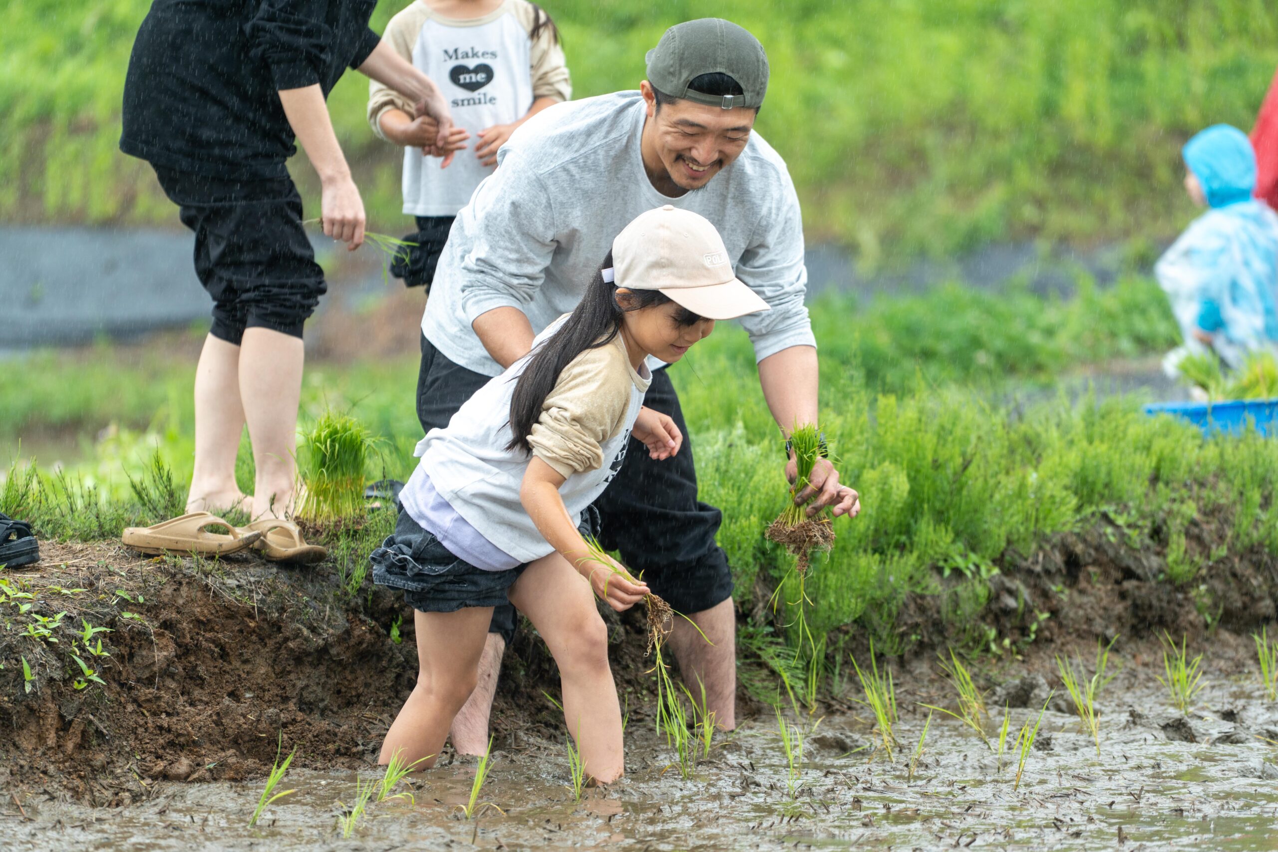 春の息吹が田んぼに満ちるころ、シャトーテル吉里では家族で楽しめる田植え体験を実施しています。子どもも大人も裸足で田んぼに入り、自ら苗を一本一本植える作業は、土の感触とともに農作業を体感する貴重な時間。作業後にはBBQや地元食材の昼食もお腹いっぱい食べられます。親子で協力しながら“命を育む体験”を共有する、春限定の思い出になること間違いなし!